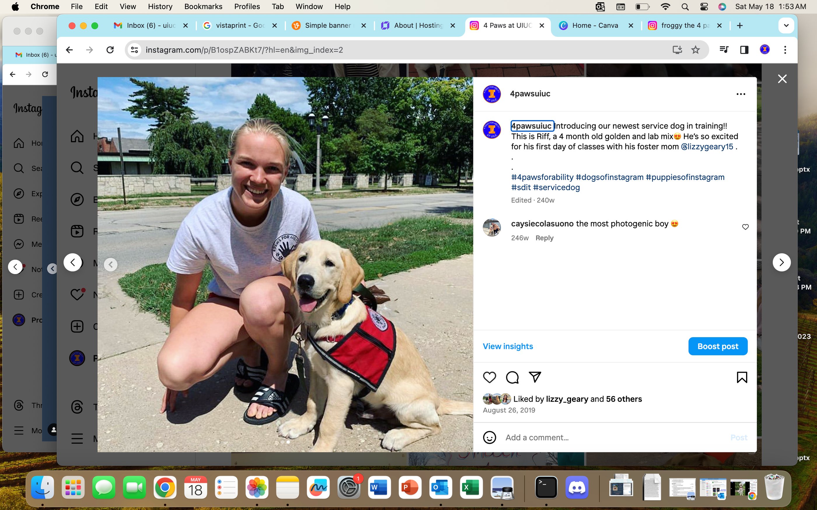 4 Paws for Ability at UIUC was founded in winter of 2017 by Lizzy Geary, and Animal Science major, after getting our first dogs on campus in the fall of 2017. We are so glad Lizzy brought and spread the mission of 4 Paws for Ability all the way to Champaign, Illinois from Xenia, Ohio. We thank Lizzy for laying the foundation to allow this organization to grow and spread and help more children and veterans receive their service dogs!
